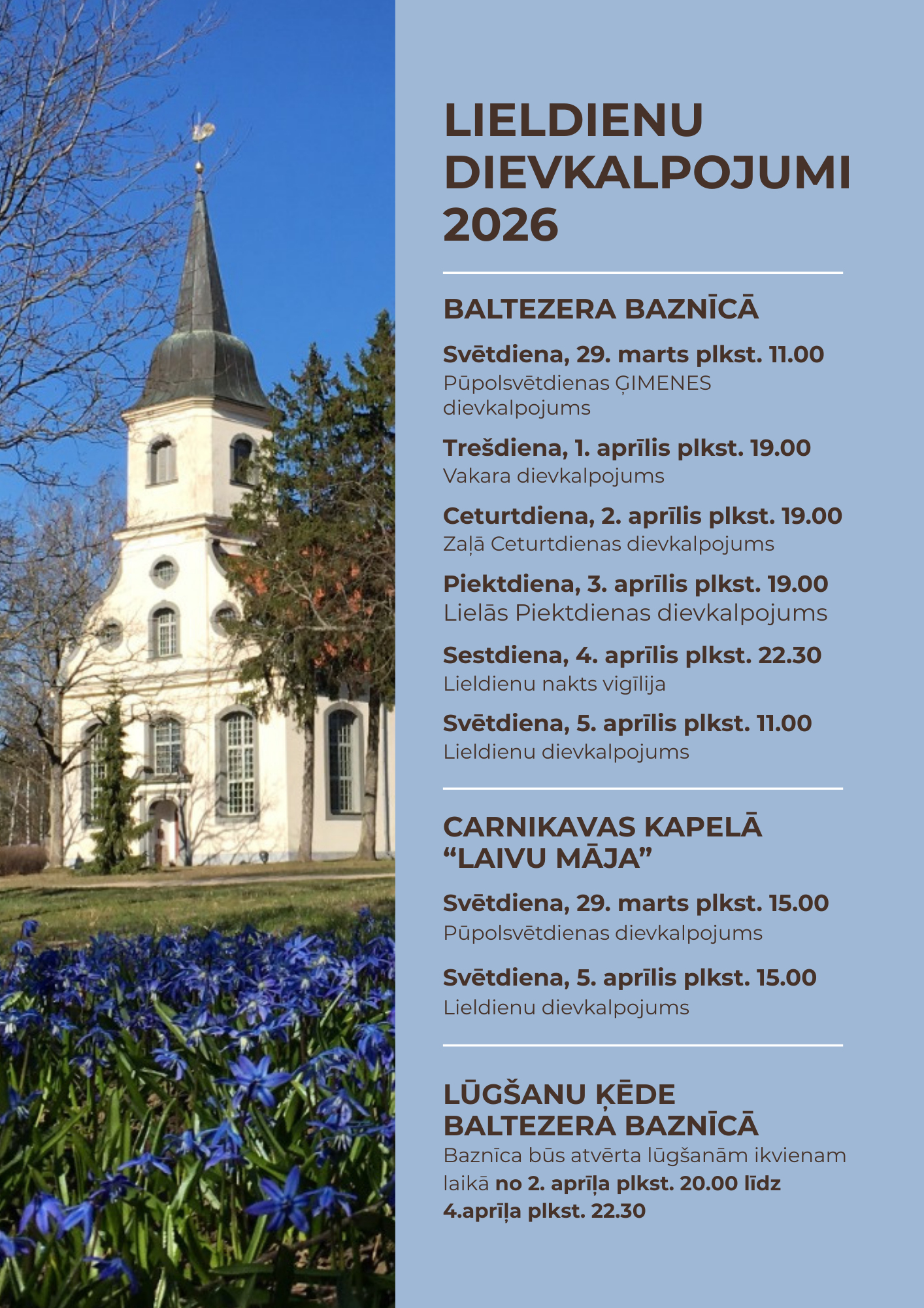 Sākot ar 07.01.2026, katru trešdienu 20:00, Baltezera baznīcā.