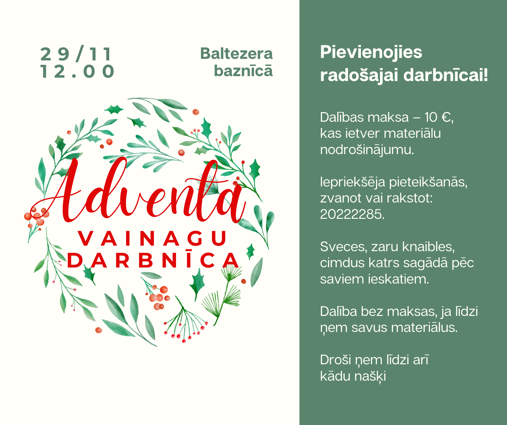 Lai šis pasākums noritētu, ir vajadzīgi brīvprātīgie palīgi. Pieteikties pie mācītāja 29559694