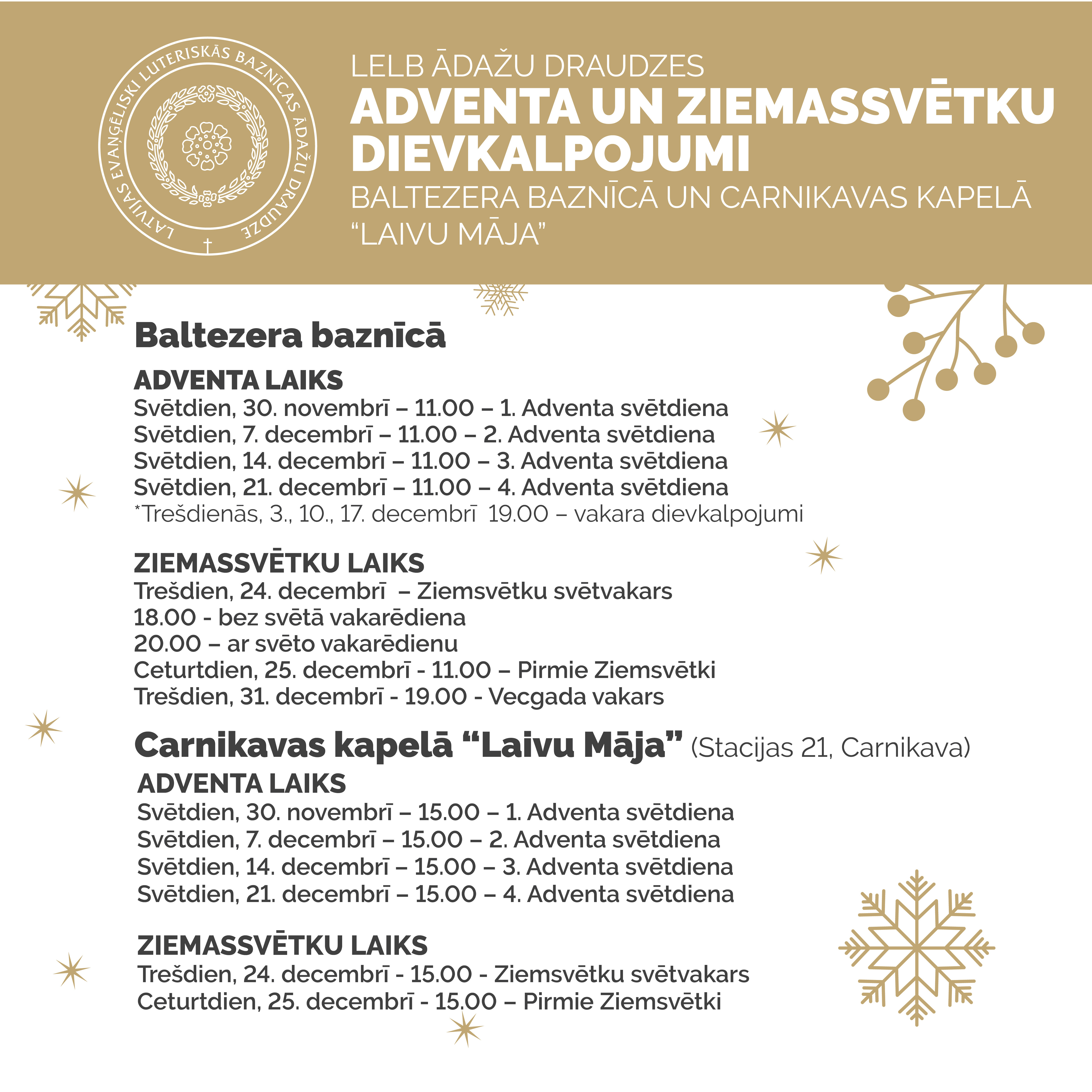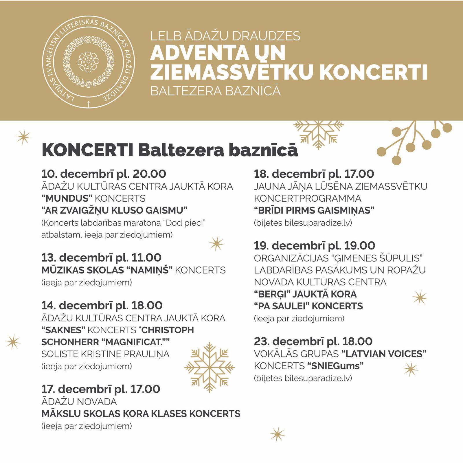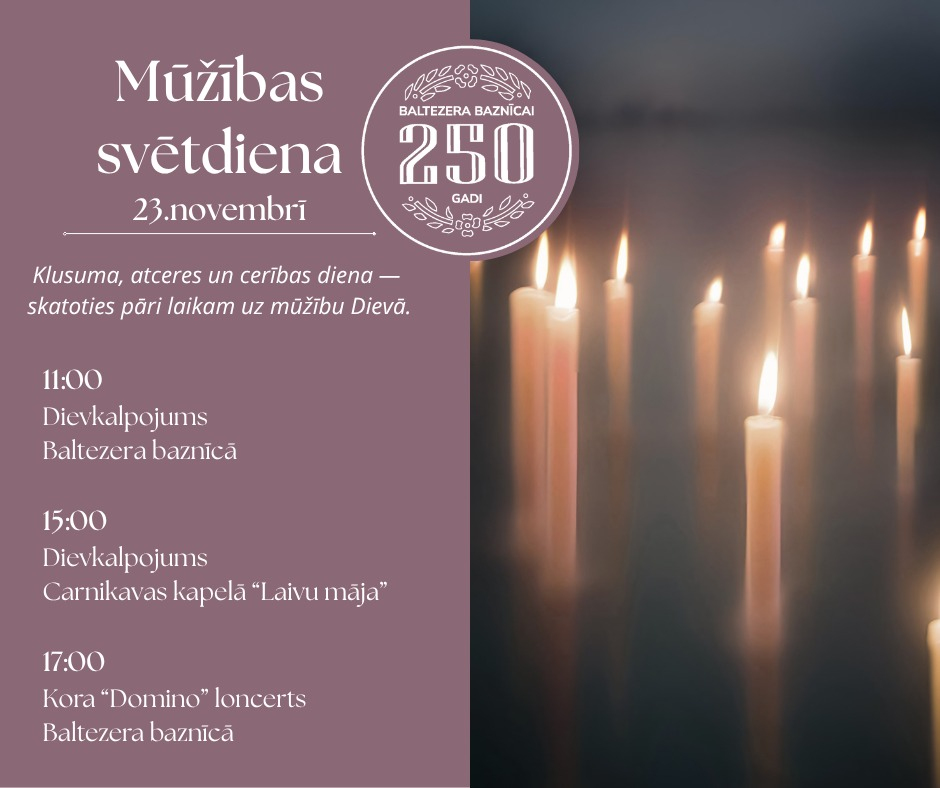 Pēc dievkalpojuma Baltezera baznīcā 12:30 Carnikavas kultūras nama jauktā kora “Vēja balss” koncerts, mākslinieciskais vadītājs Matīss Circenis.